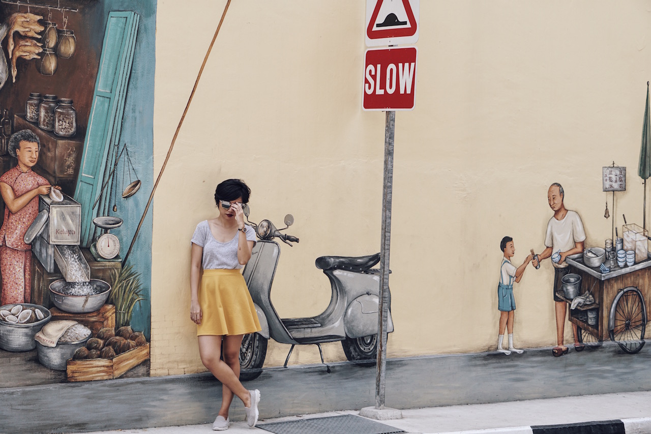 Dan seperti biasa berfoto-fotolah kami di spot ini. Sayang waktu itu kami datang di tengah hari bolong yang super duper panas sekali omg! Jadi kami menyudahi sesi foto-foto dan tidak explore ke 'gang-gang' yang lain di area Evertoan Road ni. Padahal masih banyak mural-mural dengan gambar menarik lainnya. Next time kalau saya kesana lagi, I will write another post and another hidden mural spot in Singapore ya.